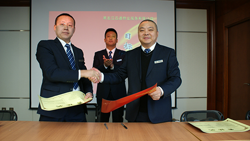 大会第四项是签订目标责任状。东方新天地项目经理黄德忠,松北项目经理高福祥,电塔家园经理刘志生,综合管理部经理杨丽洁分别对董事长签订了经营指标责任状。